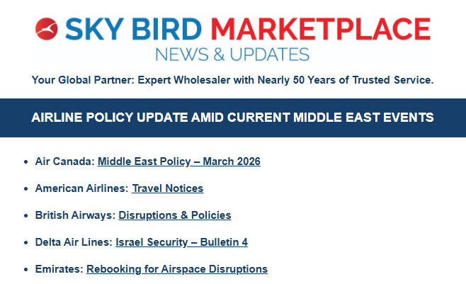 Be sure to check back frequently for our latest promotions, exclusive airline deals, newsletters, and more!