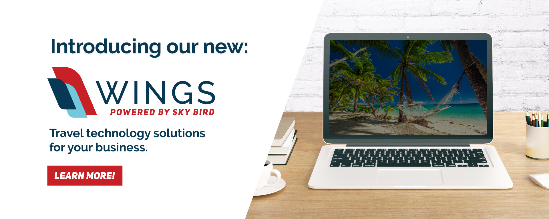 Established in 1976, Sky Bird is one of the top airline consolidators in the United States. In addition to partnering with 90+ airlines, Sky Bird pays weekly ACH commission payments on airfare, 25% commission on travel insurance, 15% on pre-paid hotels, 8% commission on tours, and additional commission on car rentals. What are you waiting for? Register for the easy-to-use WINGS Booking Platform today!